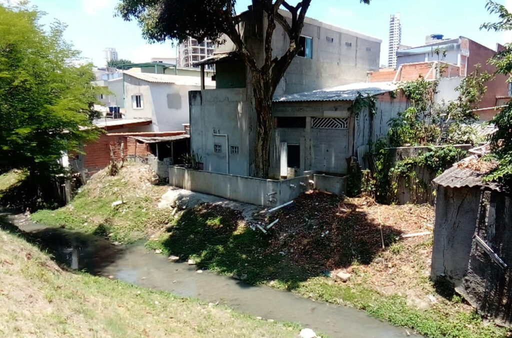 O Córrego Rapadura, um dos cursos d’água que cortam a Zona Leste, recebe visivelmente o despejo direto de esgoto doméstico, prática ilegal que deveria ter sido extinta há décadas com a ampliação da rede de coleta da cidade. Embora um dos lados do leito já tenha passagem canalizada, o lado oposto permanece vulnerável, permitindo que residências sigam lançando dejetos sem qualquer fiscalização. Resultado: um fluxo constante de água contaminada, exalando odores fortes e atraindo diversos vetores de doenças.